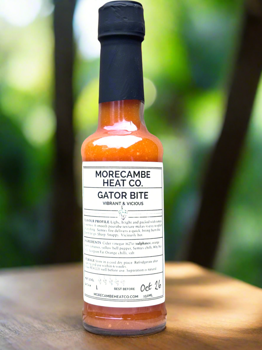 Light, bright, and viciously hot — this is a sauce that doesn’t mess about. Built on a sweet, sharp tomato base, Gator Bite layers in a trio of fiery chillies to deliver a complex, snapping heat that bites hard and lingers long.