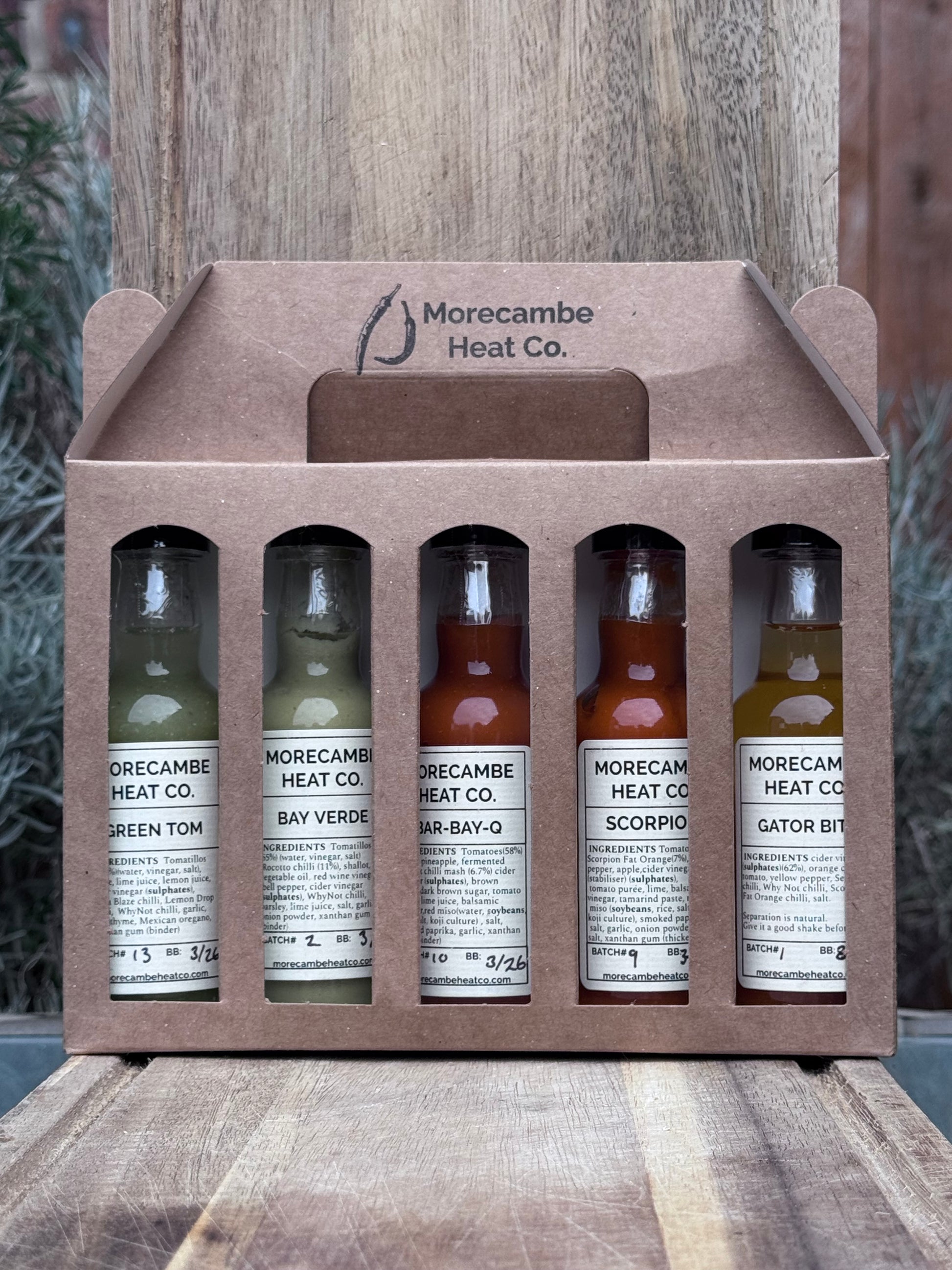 Any five 50ml bottles from our core range of seven sauces — all handcrafted, all packed with Morecambe attitude.